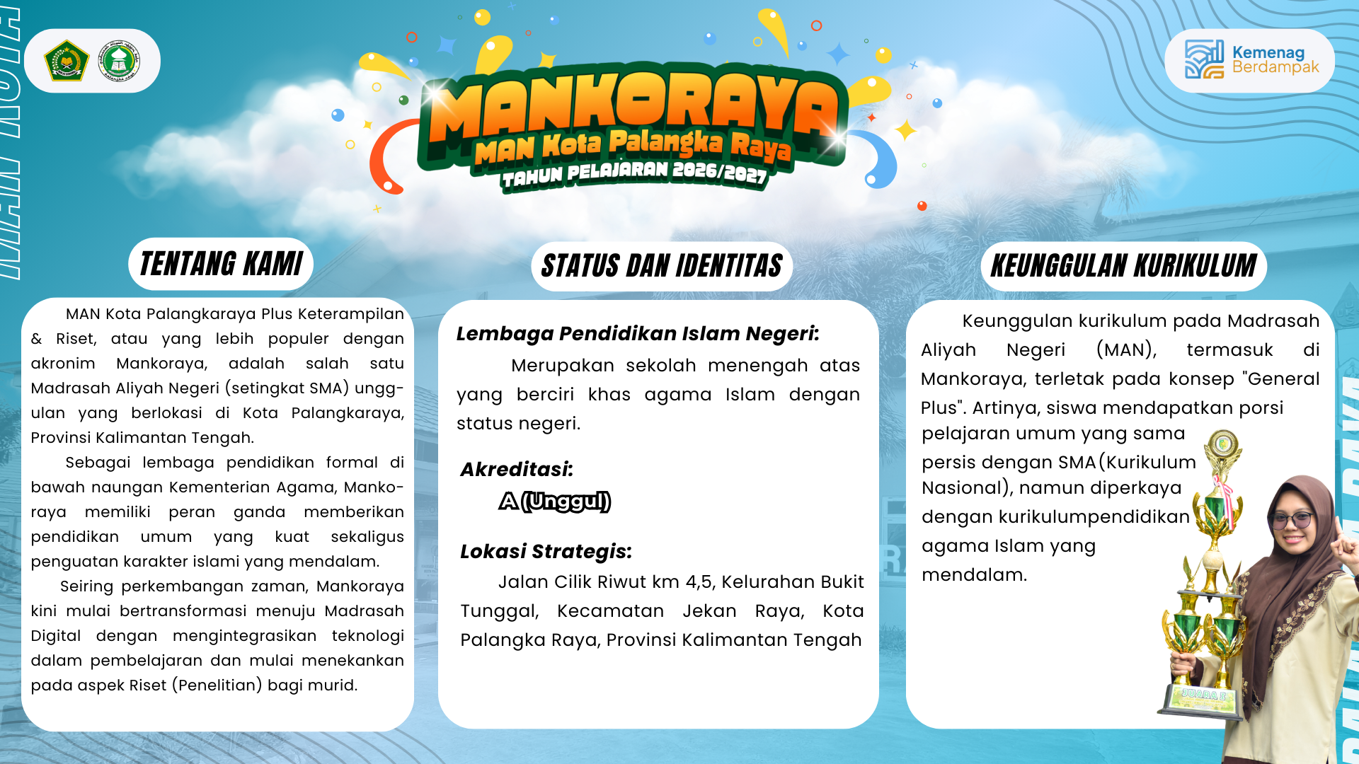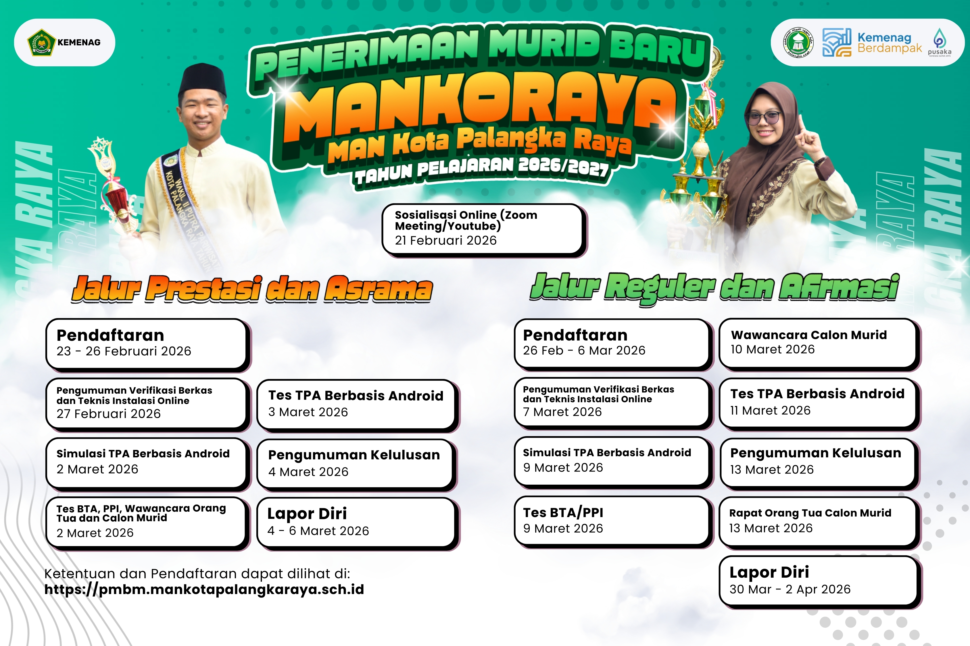 PMBM adalah proses Penerimaan Murid Baru Madrasah untuk calon siswa yang ingin melanjutkan pendidikan di MAN Kota Palangka Raya Tahun Pelajaran 2026/2027.